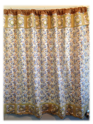 (3) The curtain was going to be just a little to short with the width of fabric (minus one border) so I decided to add some coordinating fabric from my stash. I pretty much just made a big tube of coordinating fabric the width of my curtain.